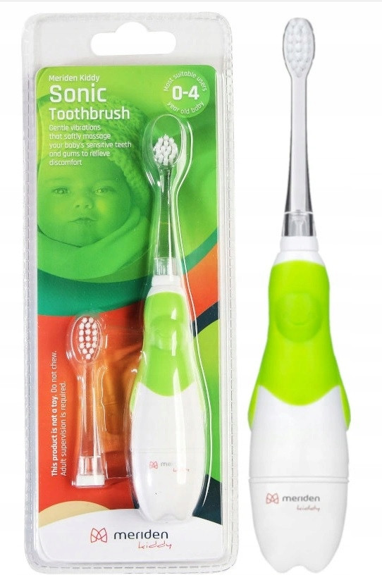 Зубна щітка, яка була розроблена, щоб допомогти батькам підтримувати оптимальну гігієну порожнини рота своїх дітей. Зубна щітка Sonic ToothBrush Meriden Kiddy з м'якою щетиною і м'якими вібраціями є ідеальним інструментом, який дозволяє найменшим дбайливо і ретельно очищати поверхню зубів і ясен. Sonic ToothBrush оснащена двохвилинним таймером, який кожні 30 секунд сигналізує про необхідність переходу до наступної чверті зубної дуги. Таймер допомагає в прибиранні та формуванні належних гігієнічних звичок з раннього віку.