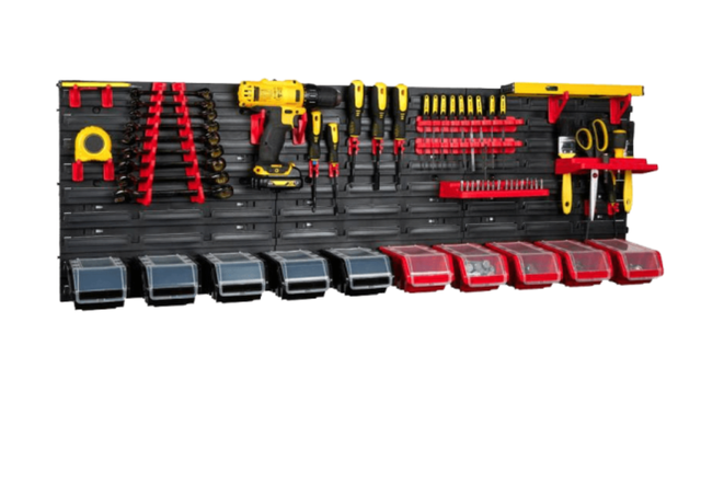 - Панель для інструментів 115 * 39 см + 10 контейнерів з кришкою - практичний спосіб організації майстерні, гаража, складу або підсобного приміщення.