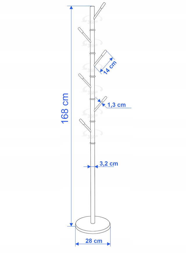 - Вішак **Simo** монтується швидко й без проблем: достатньо вкрутити кожен гачок у центральну стійку. За потреби плечики можна трохи відрегулювати вліво чи вправо. Шість гачків дозволяють розмістити значну кількість одягу, тож модель стане у пригоді як удома, так і в офісі.